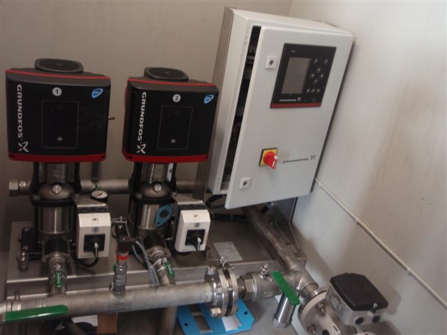 Kaskadeinstallation af pumper i Trykforøgeren |